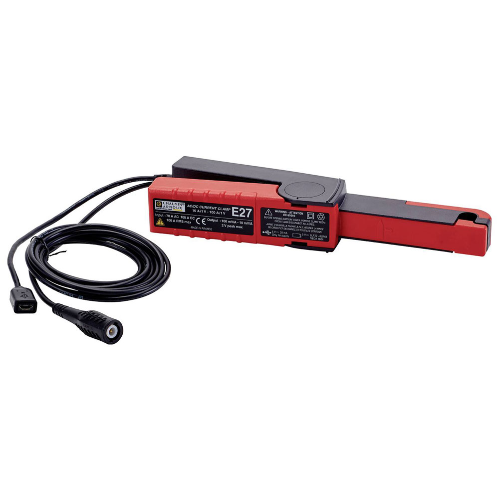 The Chauvin Arnoux E27 clamp meter adapter is a versatile current converter suitable for A/AC and A/DC readings ranging from 100 mA to 100 A. Utilising its Rogowski coil design, it delivers accurate measurements essential for electrical analysis and diagnostics. Typical applications include monitoring electrical circuits and systems in industrial or commercial settings.