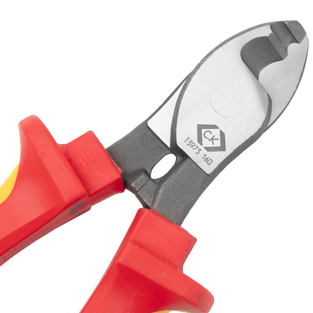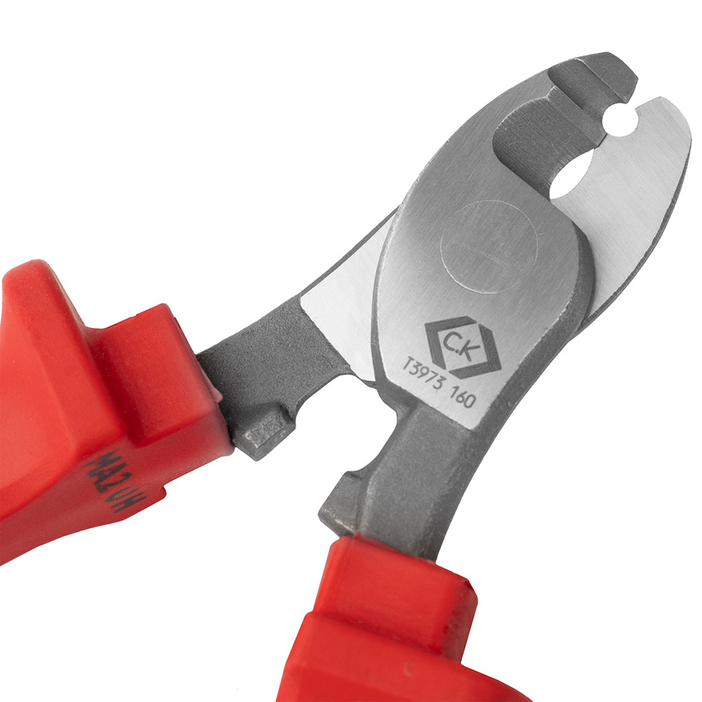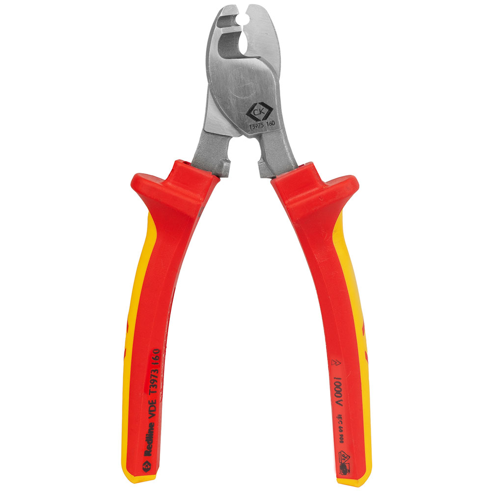CK Tools T3973 160 Redline VDE Cable Cutter 160mm - Two component, ergonomic design, with anti-slip horns for increased comfort, control & safety.