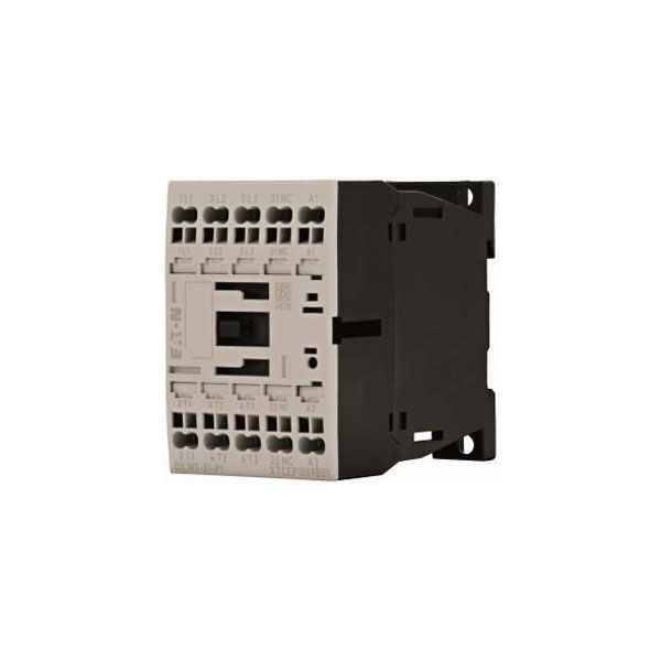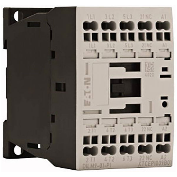 The Eaton DILM9-01(24VDC)-PI is an electrical contactor designed for use with circuits up to 4 kW and 9 A. This contactor features 3 normally open contacts and operates on a 24 V DC coil. It is commonly used in industrial automation and machine control applications.