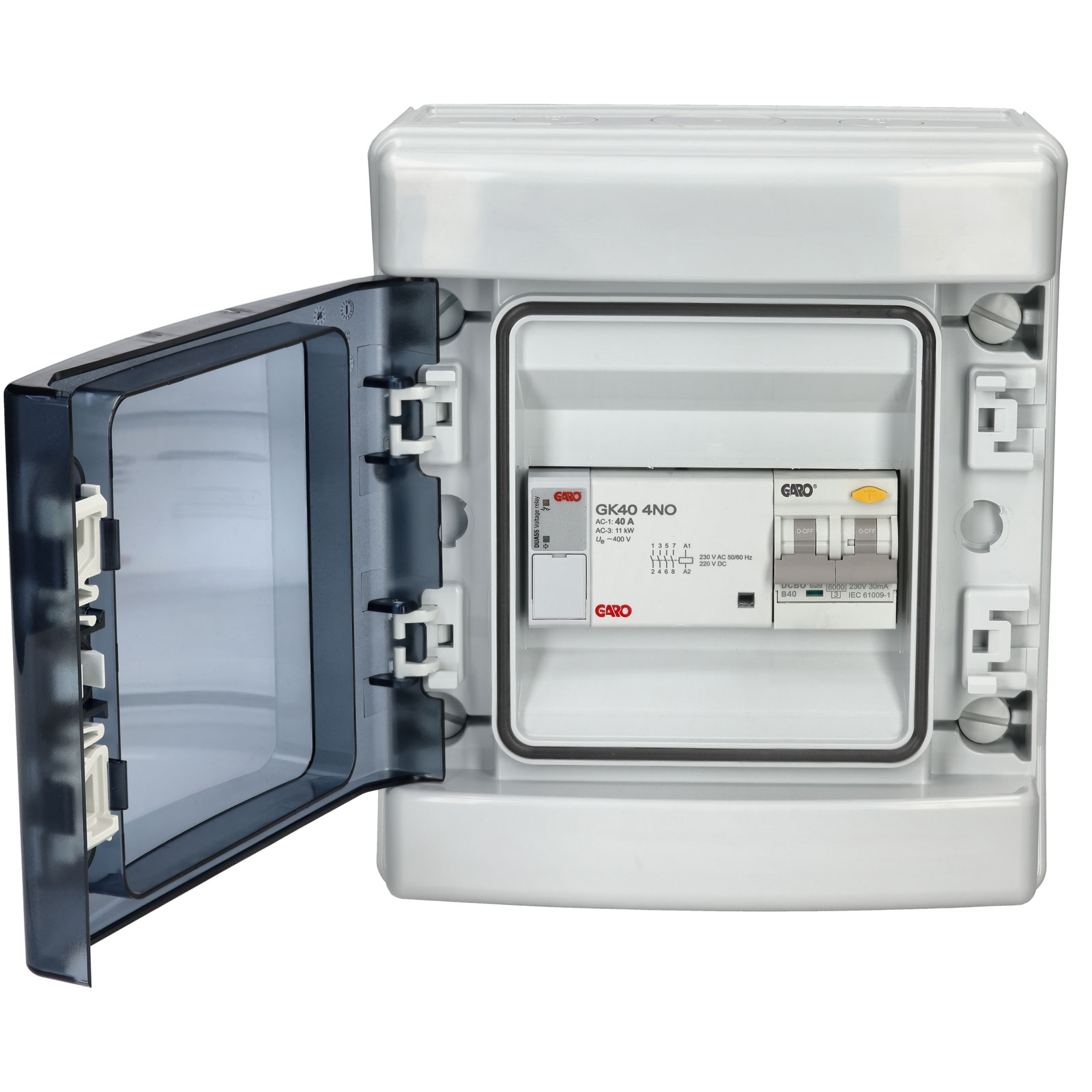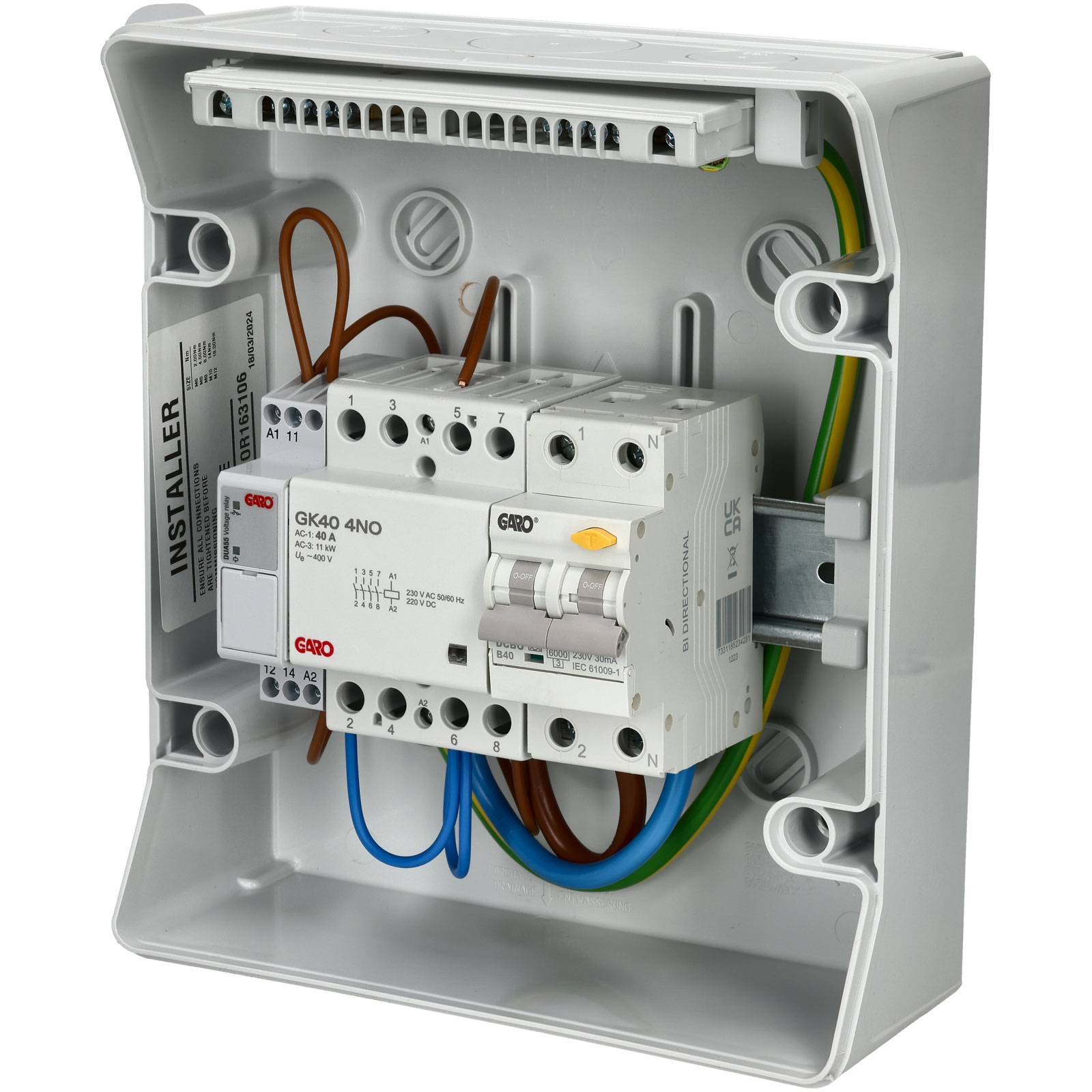 The Garo GCEV40PME 40A EV CU with Type A RCBO and PME Fault Detection IP65 offers protection against electric shock in a single phase installation which is provided by a device that electrically disconnects the vehicle from the live conductors of the supply and from protective earth in accordance with Regulation 543.3.101.