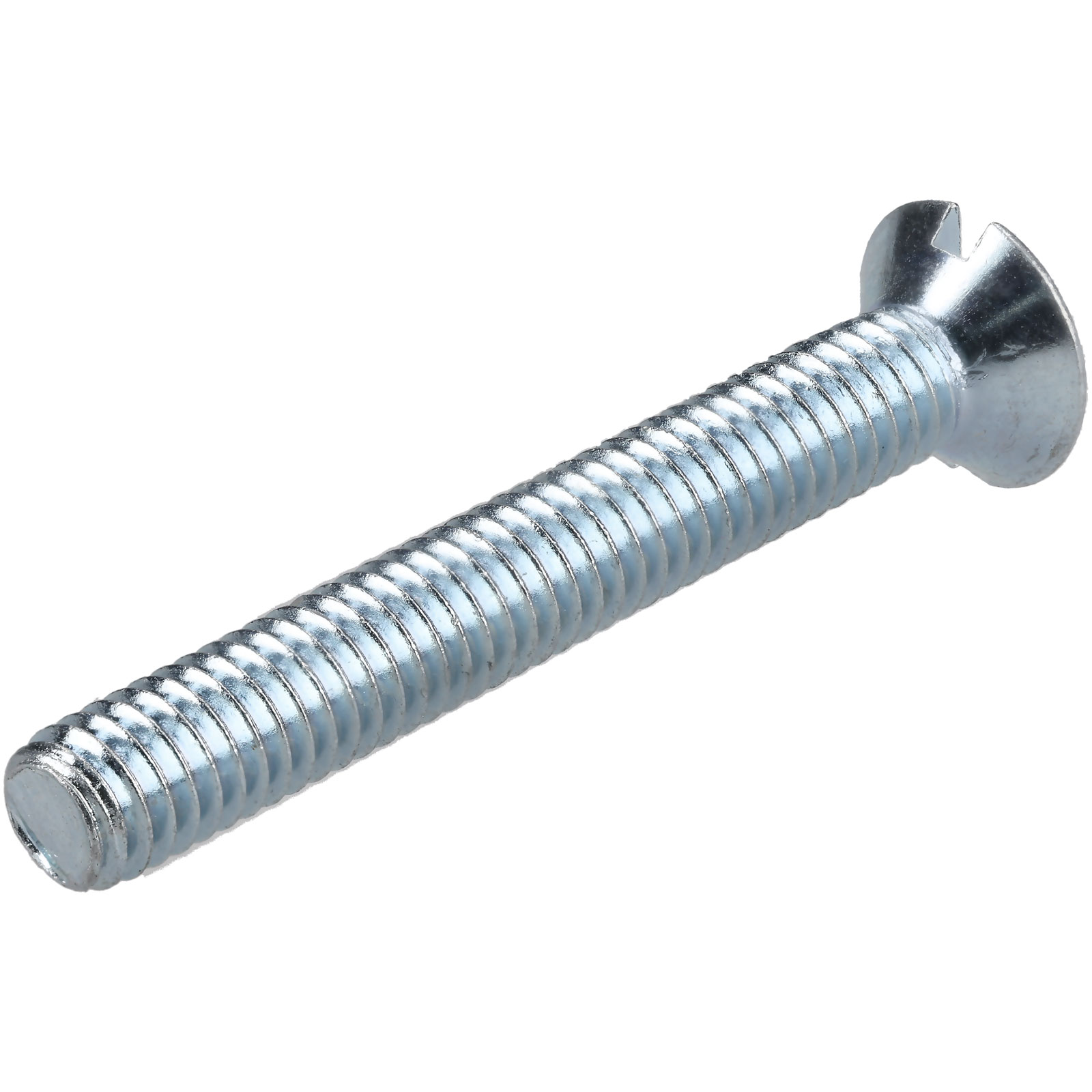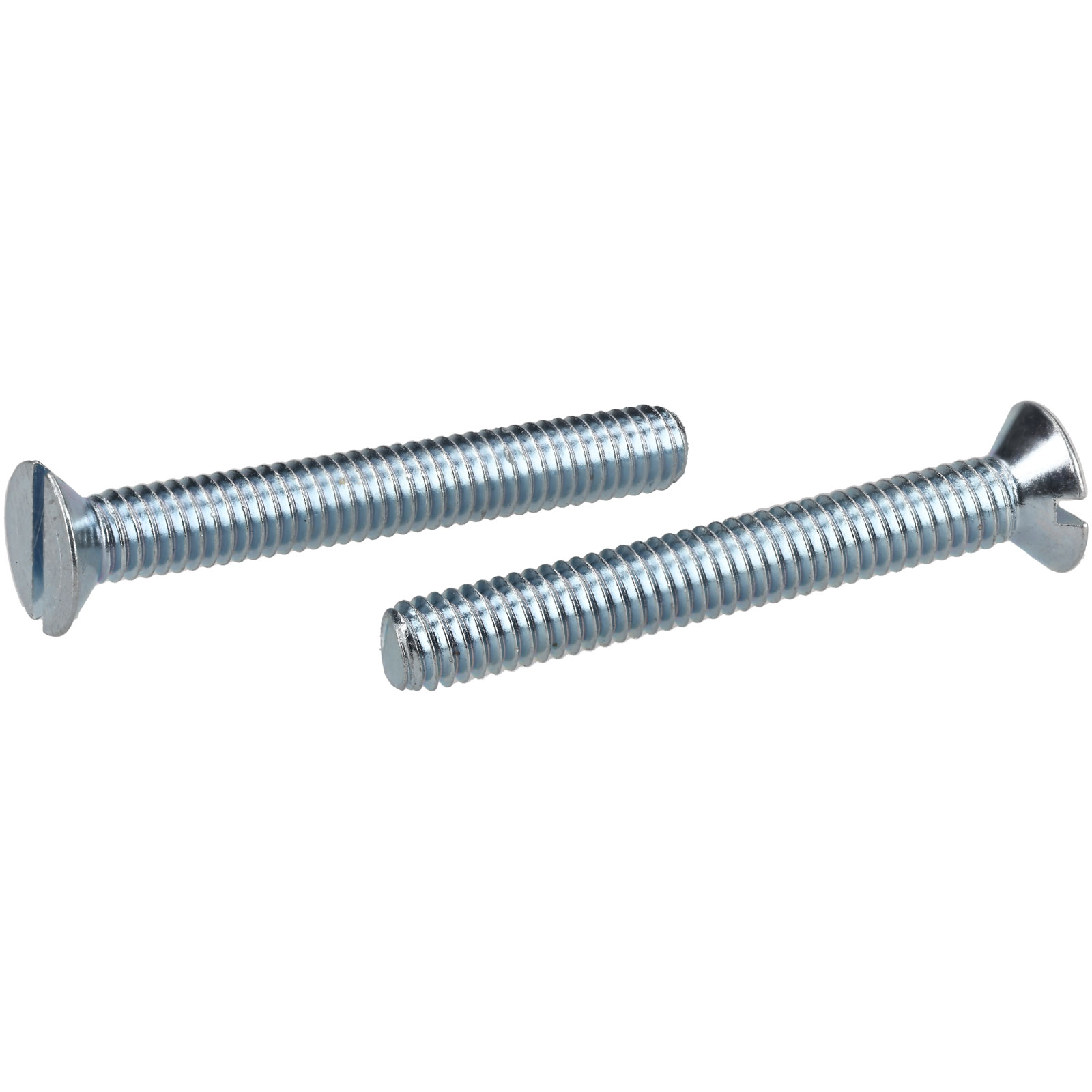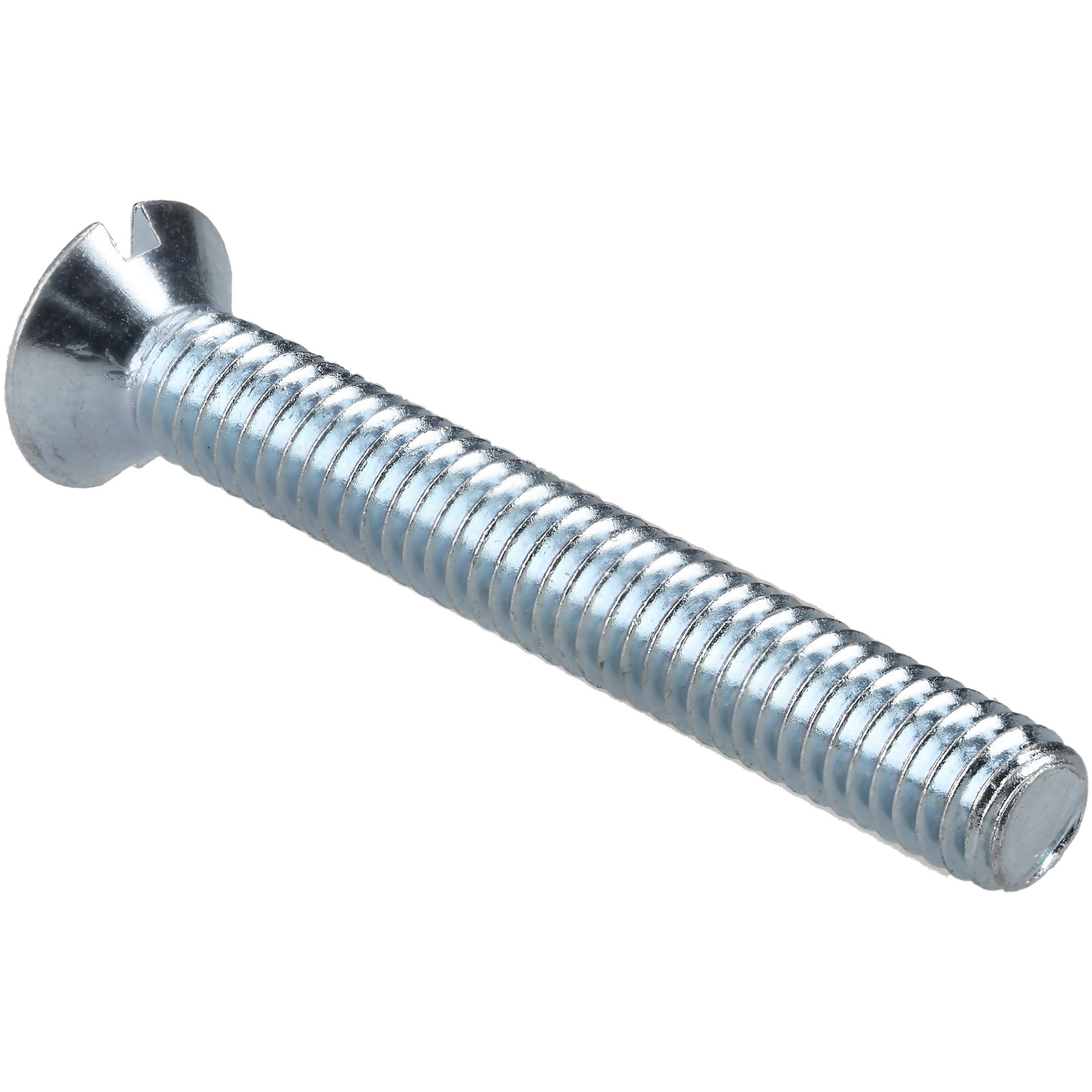 These R-TECH 337066 Countersunk Head Slotted Machine Screws have a flat head and a bright zinc-plated, passivated finish for corrosion resistance.