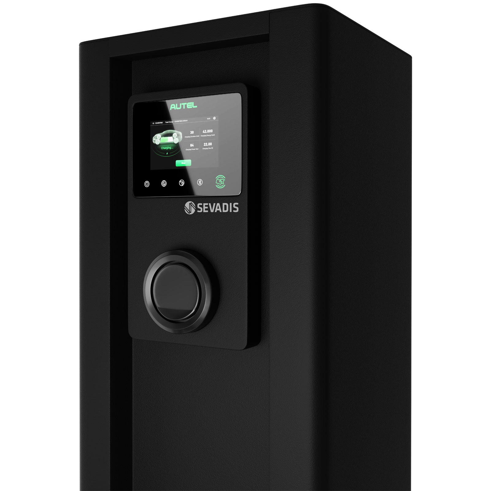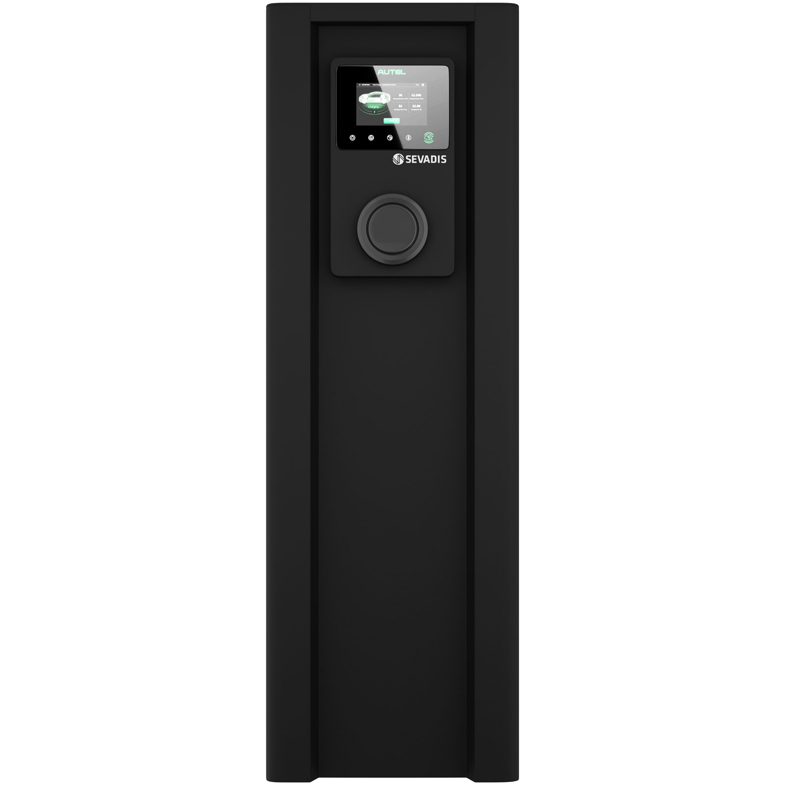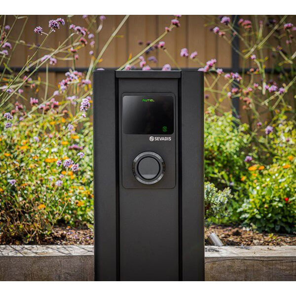 The Sevadis MaxiCharger Dual Pillar Housing with Distribution Board is floor-standing and is compatible with the MaxiCharger range of chargers.