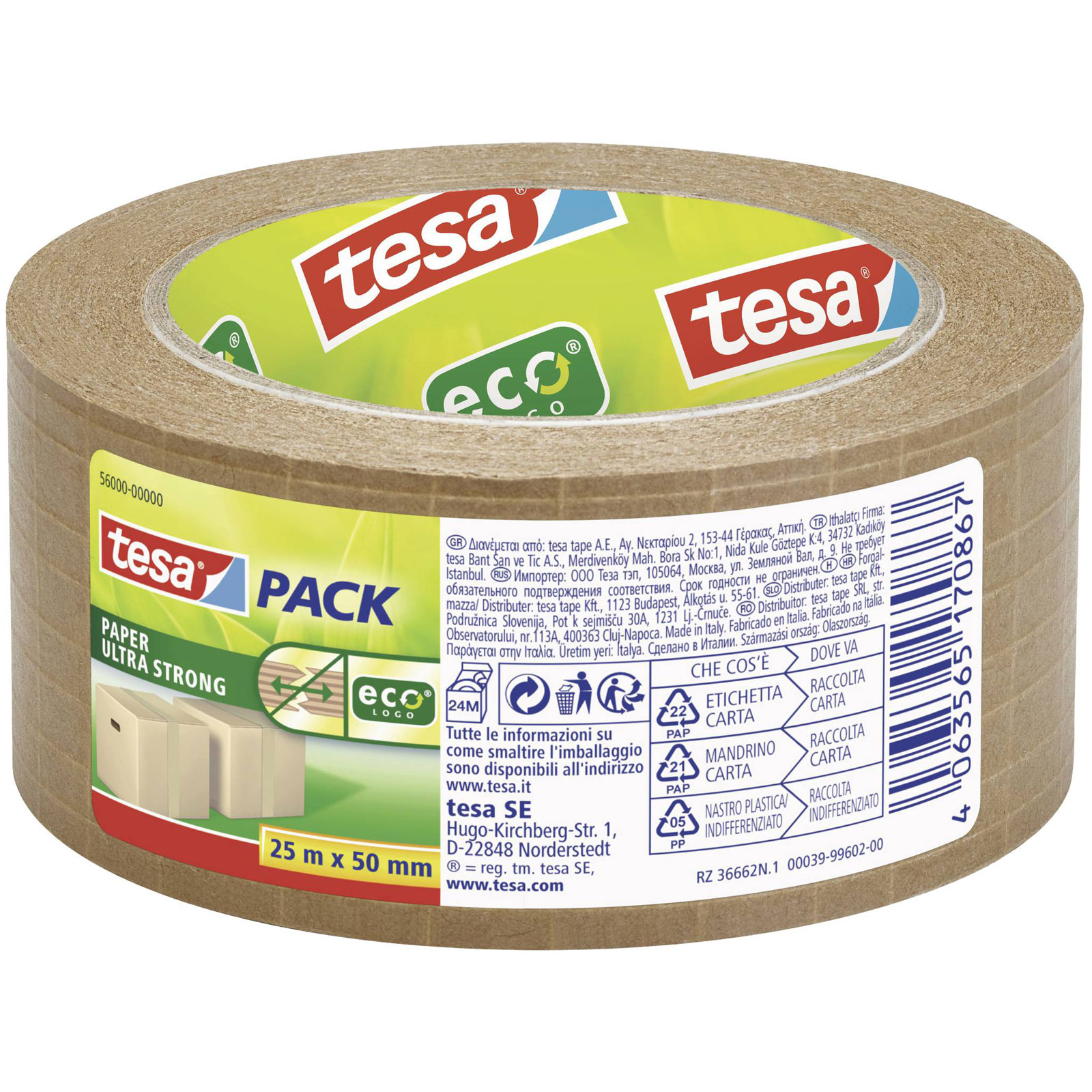 The tesa PAPER ULTRA STRONG 56000-00000-00 packaging tape is a durable brown tape measuring 25mm in width and 50m in length. It is ideal for secure packaging and sealing applications, providing reliable adhesion. Typically used for heavy-duty tasks, this tape ensures parcels remain intact during shipping.
